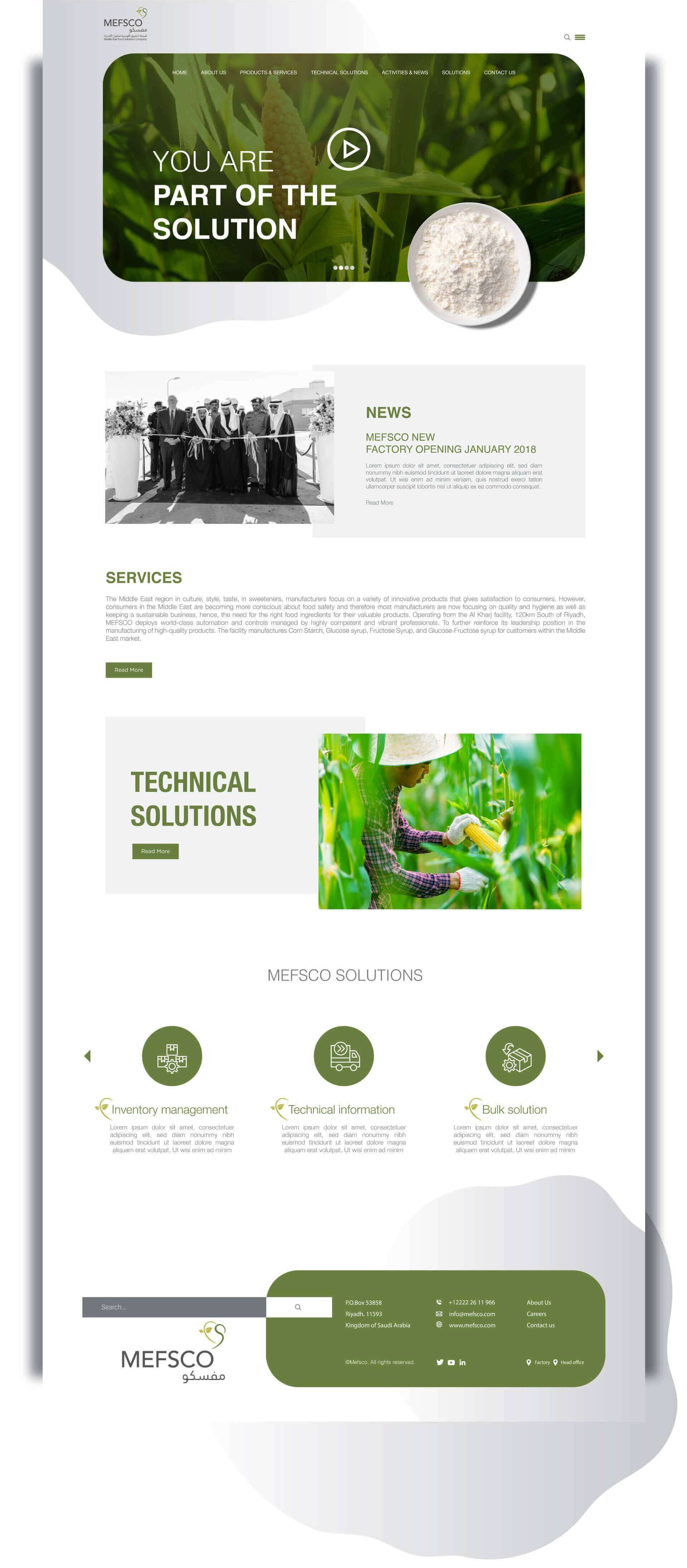خدمات تطوير الموقع الشاملة من وكالة بيربيجوال لشركة الشرق الأوسط لحلول الأغذية
